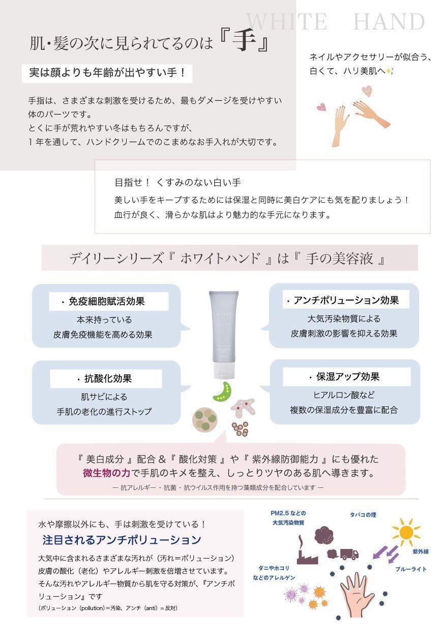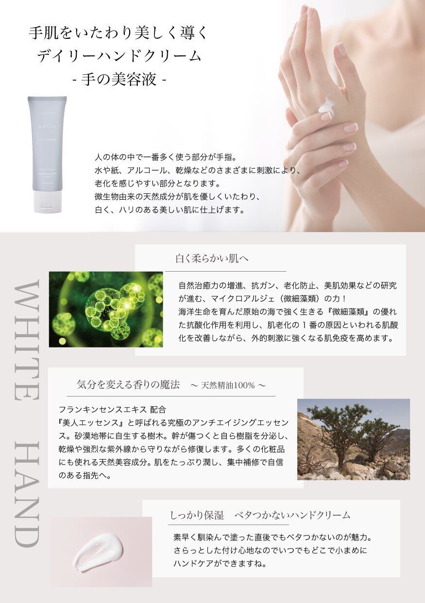 常に新しいモノづくりにチャレンジするジェニックジャパン(旧:ハイケアジャパン)が開発したホワイトハンドクリーム。
